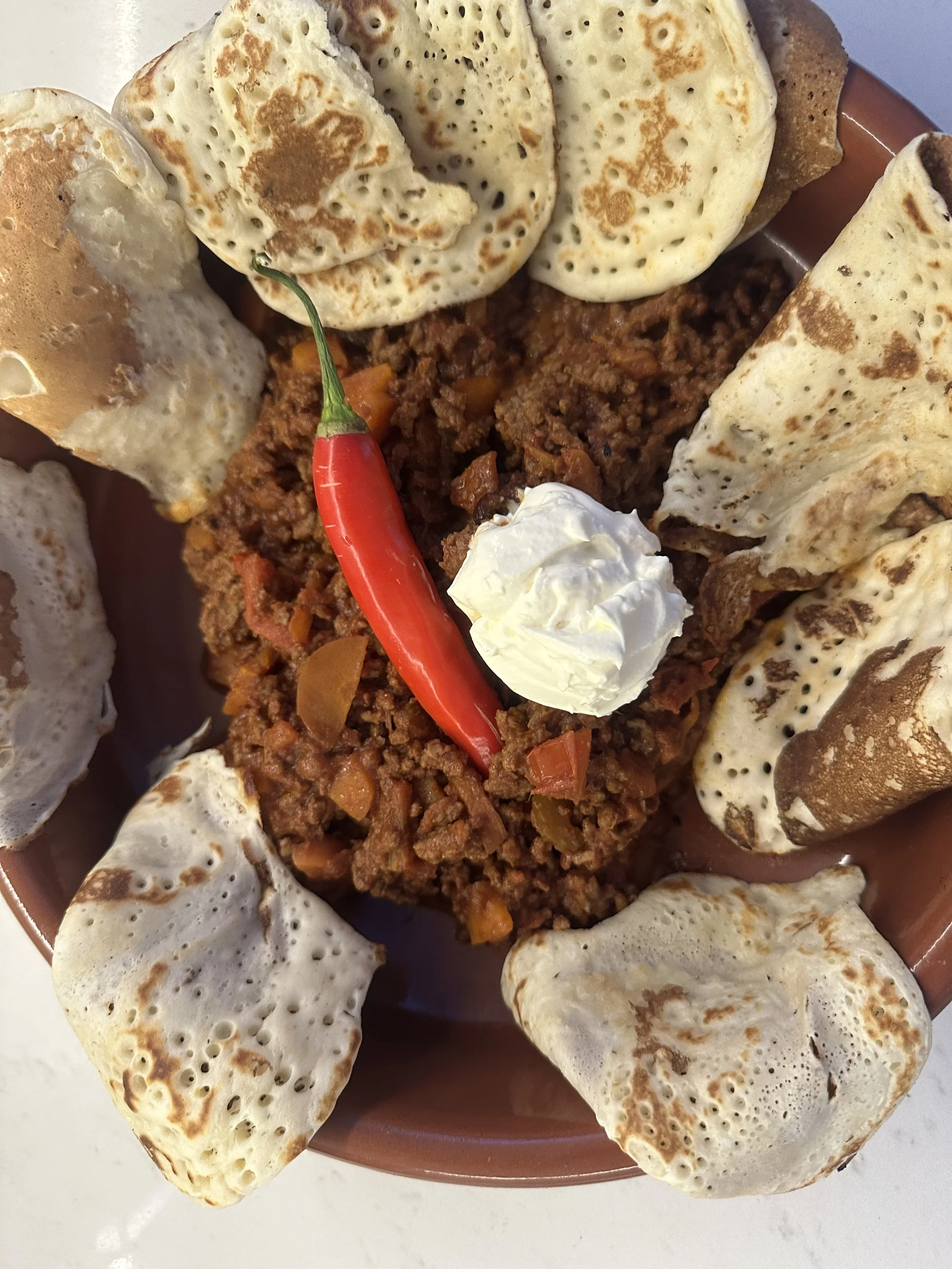 Chilli Beef with Pancakes